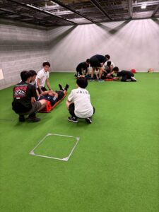 参加者は長野県内外から15名で、理学療法士や看護師、指導者の方など背景は様々でしたが、スポーツにおける心停止、脳振盪、熱中症、アナフィラキシーの講義と一次救命処置、バックボード搬送と様々な内容でしたが、みなさん積極的に取り組んでいただきました。