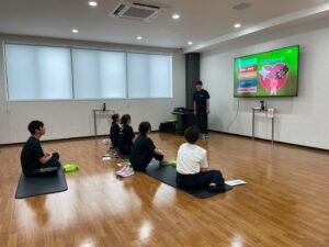 このコースは日本サッカー協会が設定した簡易救命講習会で、大阪ライフサポート協会のPUSHコースと1時間の講義を組み合わせたものです。